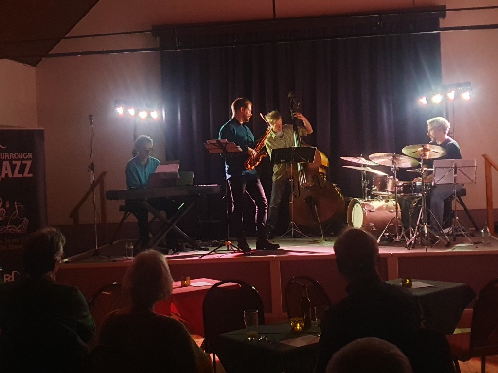 It was our first visit and we didn’t really know what to expect not having had much to do with jazz before. We came along because it was something different only a few minutes from where we live. We really enjoyed the evening, we felt very welcome and the atmosphere in the village hall was nice. It was lovely to have a bar. The sound was good, not overwhelming in a relatively small space. It was very nice to have something high quality so close to home.